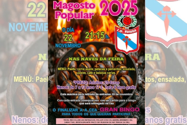 A SD Rubián organiza o seu magosto popular o 22 de novembro