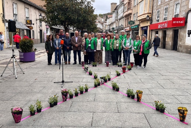 Membros do Equipo de Goberno e da Asociación Española Contra o Cancro reivindicaron a importancia da investigación contra este tipo de cancro cunha ofrenda floral na rúa Cardeal.